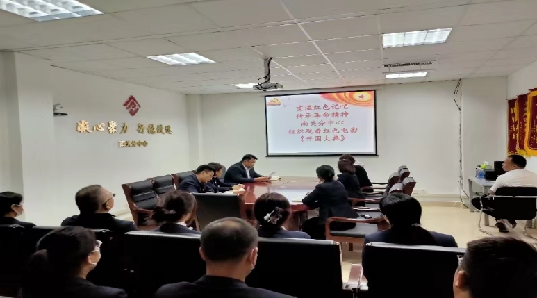 为深入学习贯彻党的二十大精神,扎实推进党史学习教育常态化长效化,进一步引导全体党员干部铭记历史,传承红色基因,赓续红色血脉,激励全体党员干部“不忘初心、牢记使命”。南关分中心于近日组织全体党员干部观看红色爱国主义电影《开国大典》。