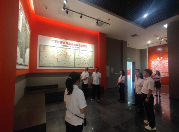 在讲解员的带领下,全体党员在红色印迹展厅,通过主题浮雕墙、半景画、展板等场景,详细了解了“三下江南、四保临江”战役期间发生的历史事件,感受革命先烈们的坚定信念和丰功伟绩。
