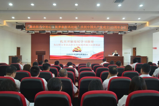 初心如炬,不忘来时路。为热烈庆祝中国共产党成立103周年,深入学习贯彻习近平新时代中国特色社会主义思想,推动党纪学习教育走深走实,教育引导党员干部做到学纪、知纪、明纪、守纪,进一步提升公积金中心党组织的凝聚力、战斗力,增强党员干部职工集体荣誉感,激发担当奉献精神,6月28日,长春市住房公积金管理中心开展“廉洁担当守初心·筑梦新程再启航”庆祝中国共产党成立103周年系列活动,机关党员干部职工,各分中心、分理处代表340余人参加活动。
