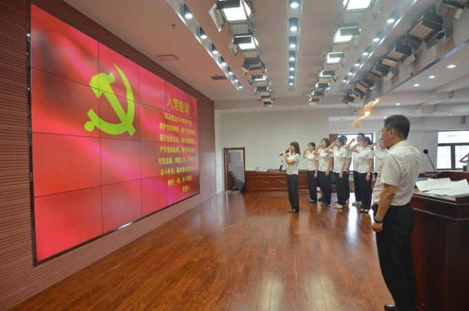 党旗所指,心之所向;一句誓言,一生信仰。在党的生日即将来临的重要时刻,在鲜红的党旗下,9名新党员庄严宣誓,全体党员重温入党誓词。“我志愿加入中国共产党……随时准备为党和人民牺牲一切,永不叛党。”铮铮誓言,铿锵有力;拳拳红心,炽热如初。雄浑激昂的国际歌响彻会场,激荡百年的旋律带来的心灵震撼和精神鼓舞,激励在场的每位党员同志铭记这一时刻,自觉把践行入党誓词作为终身追求和奋斗目标,永葆忠诚廉洁的政治品格,以更加昂扬的精神面貌投入到服务群众工作中。