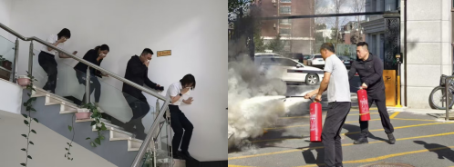 随着应急警报的拉响,火场逃生疏散演练正式启动。全员迅速进入应急状态,在安全员的引导下,大家严格遵守“弯腰、低姿、捂口鼻”的逃生要领,沿着预定的疏散路线,快速、有序地从办公区域撤离至指定的室外安全集结地点。整个过程紧张而不慌乱,达到了预期的演练效果。