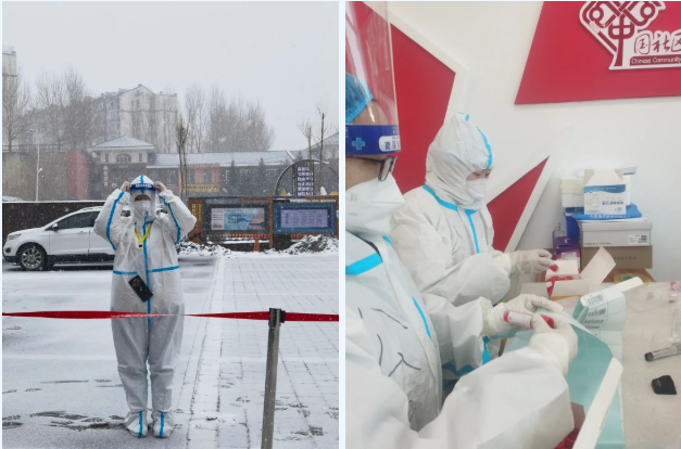 南关分中心董欣卓同志作为第一批下沉志愿者持续奋战坚守多个社区主动承担“急难险重”;朝阳分中心李茜同志主动请缨上岗坚守一线展现巾帼花甲英勇气概,赵辰同志每天带着降糖药维持身体依然连续坚持9天不离“战场”;铁路分中心宋方国同志在已封控24栋楼的中风险小区每天工作十几个小时;绿园分中心赵春杰同志舍下对家中年迈母亲的守护以无畏斗志带领分中心队伍连续作战;高新分中心刘纬同志关键时刻挺身而出展现巾帼力量全力投入疫情防控,孙勃同志在暴雪中带领志愿者守住核酸检测主阵地感动居民,王迎新同志患腰部疾病仍连续奋战7天不下“火线”;经开分中心张睿坚同志以身作则深入危险性较大的隔离酒店参加防控,王楠楠同志忍痛与未满月的孩子分别坚持一线工作,自我隔离不能归家;贷款经办中心杜广然同志身处天寒地冻环境维持核酸检测秩序,即使冻得第二天起不来床仍咬牙坚持到岗工作;法规处张华山同志每天一丝不苟完成“敲门行动”凸显坚毅逆行的勇气……