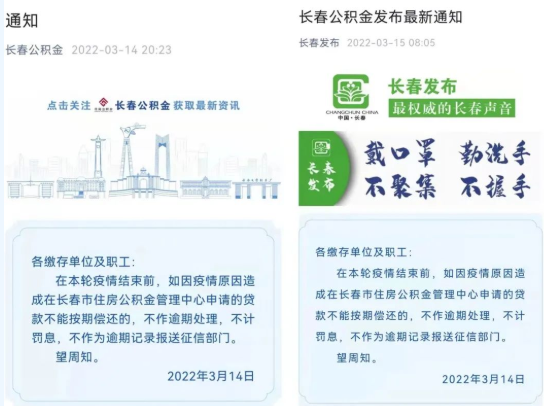 3月14日,中心及时通过官方网站和微信公众号发布信息,明确通知各缴存单位及职工,在本轮疫情结束前,如因疫情原因造成在长春市住房公积金管理中心申请的贷款不能按期偿还的,不作逾期处理,不计罚息,不作为逾期记录报送征信部门。信息一经发布,得到了广大职工群众的认可,“长春发布”等主流媒体平台也对这一信息进行推广转发。通过疫情期间惠民举措,进一步强化住房公积金服务为民宗旨,提升长春百姓群众“安全感”。