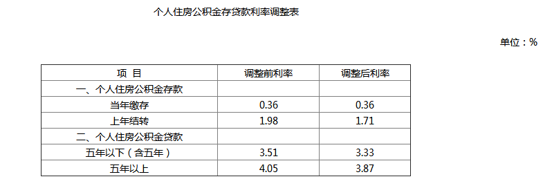 附表:个人住房公积金存贷款利率调整表